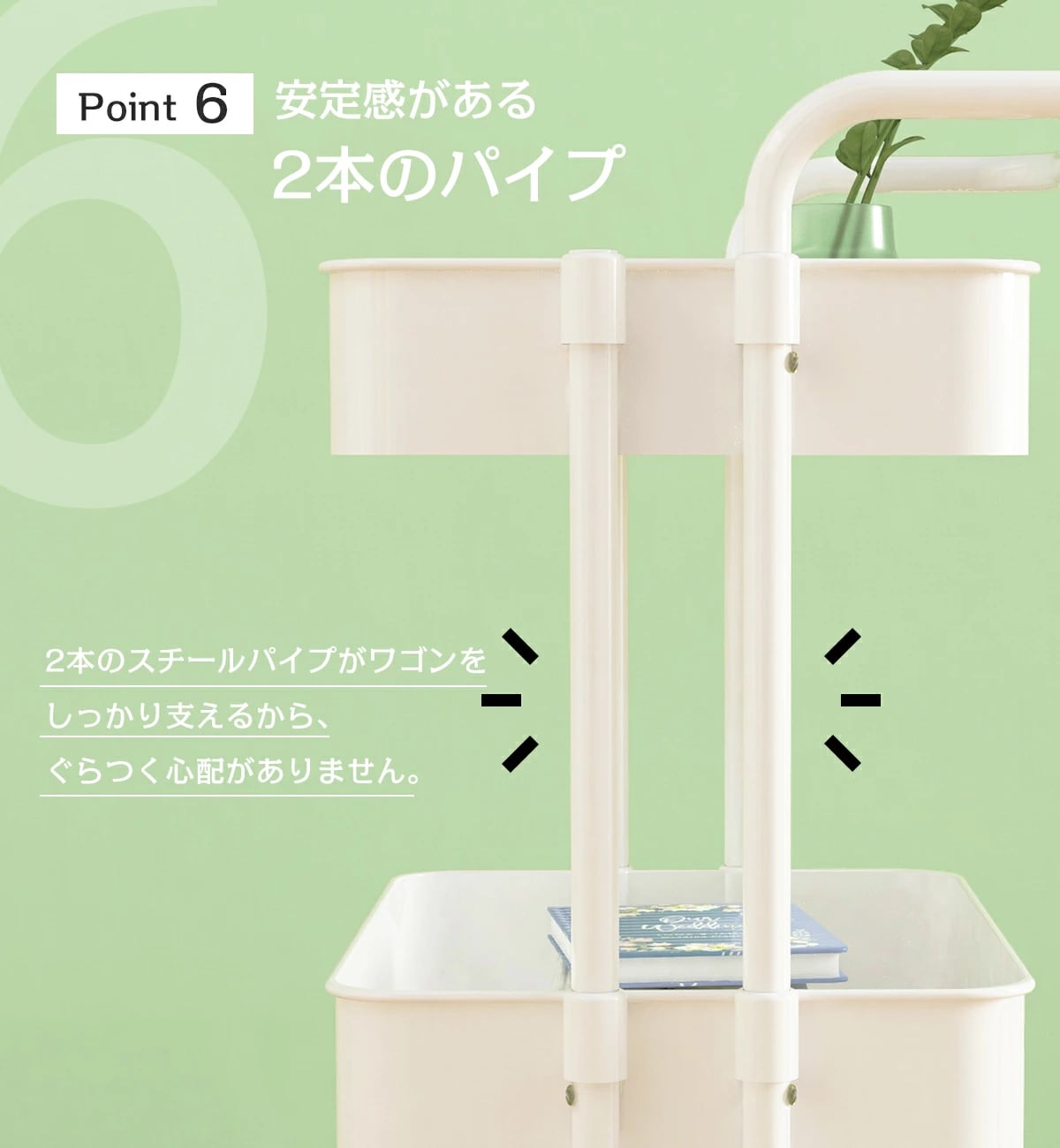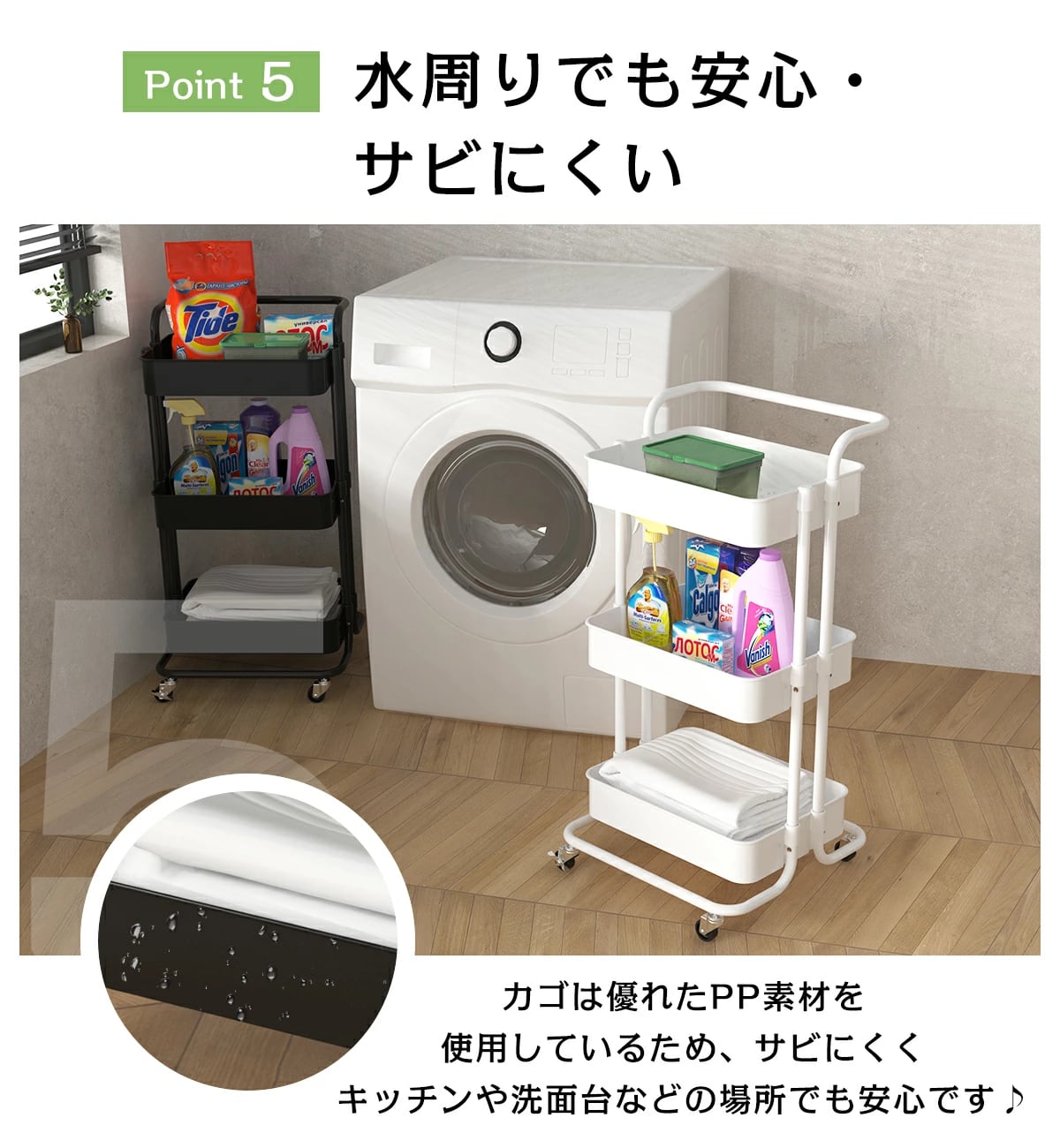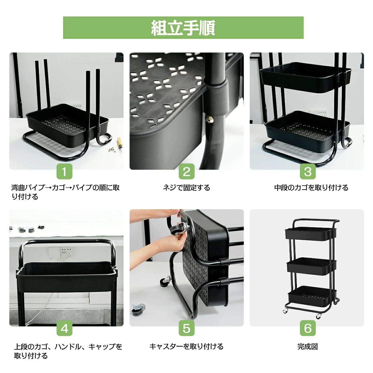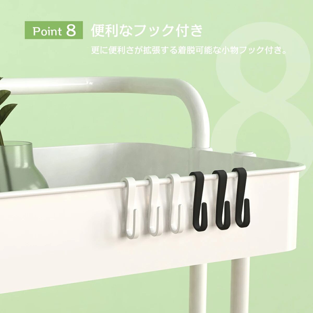 キッチンに華を添える、取っ手付きのキッチンワゴンです!耐荷重60㎏のこのワゴンは、3段の収納スペースを備え、食材や調理器具を効率良く収納できます。これにより、キッチンがすっきりと片付き、調理作業がより快適に進められます。